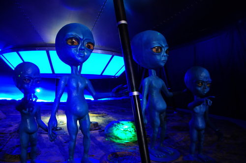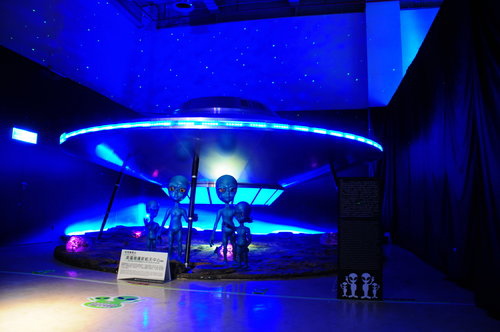 以1:1打造了一座六米高的飛碟, 還做了幾個可愛的大大小小外星人在旁邊~