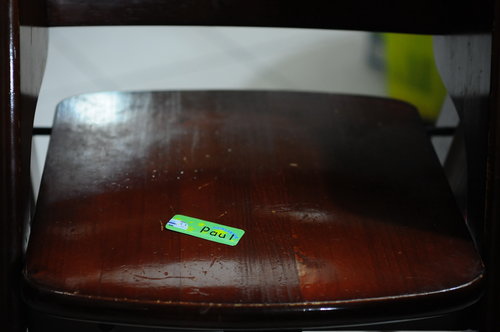某日,Paul 發現他不在家時,姊姊中午吃飯都坐這張椅子.