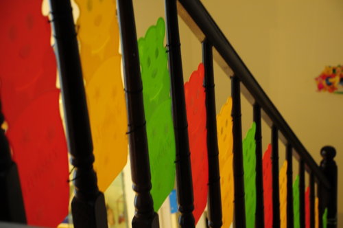 細心的屋主一家,在樓梯間放的彩色隔板,既安全又美觀!