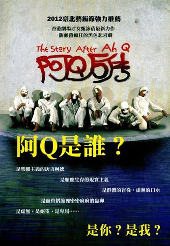 華人文化衍生的諷刺文學,以嘻笑怒罵的鮮明丑角形象,寄寓對現實的批判與嘲諷,體現作家對社會的入世關懷。曾以劇場作品《兩條老柴玩遊戲》與《遊園》廣受臺灣觀眾好評的甄詠蓓,與九名丑角裝扮的實力派演員腦力激盪、追宗問史,用現代人視角推出《阿Q後傳》,如令人警醒的暮鼓晨鐘。