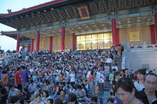 熟悉的我們,停好車.吃完晚餐,幽雅的進場~哇!光音樂廳階梯的人潮,