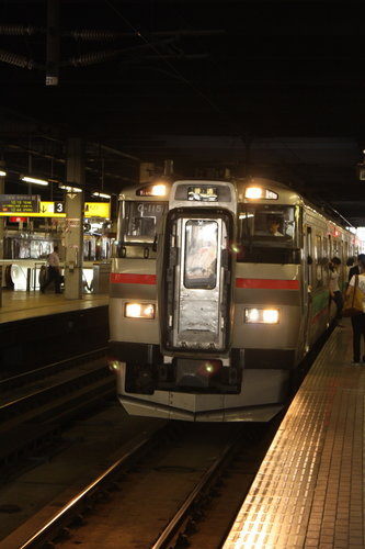 車來囉!非常準時,日本班車很少誤點的,只有早到,沒有晚到的