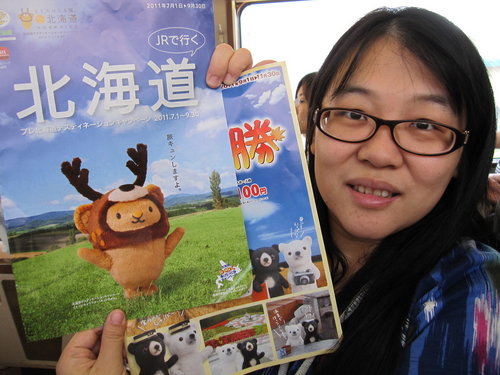郁在展示JR旅遊資料,看那隻鹿跟黑白熊,真有趣!
